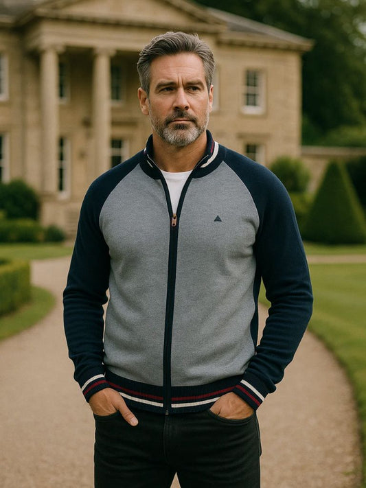 Zipper Color Block Standing Collar Cardigan Sweater - Manly Man